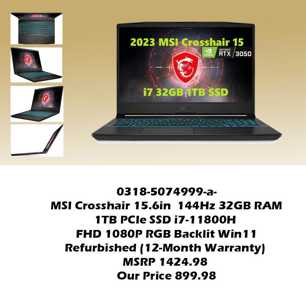 0318-5074999-a-MSI Crosshair 15 Model-15 A11UCK-264 UPC-724129383133 ASIN-B0FMDMY6G1